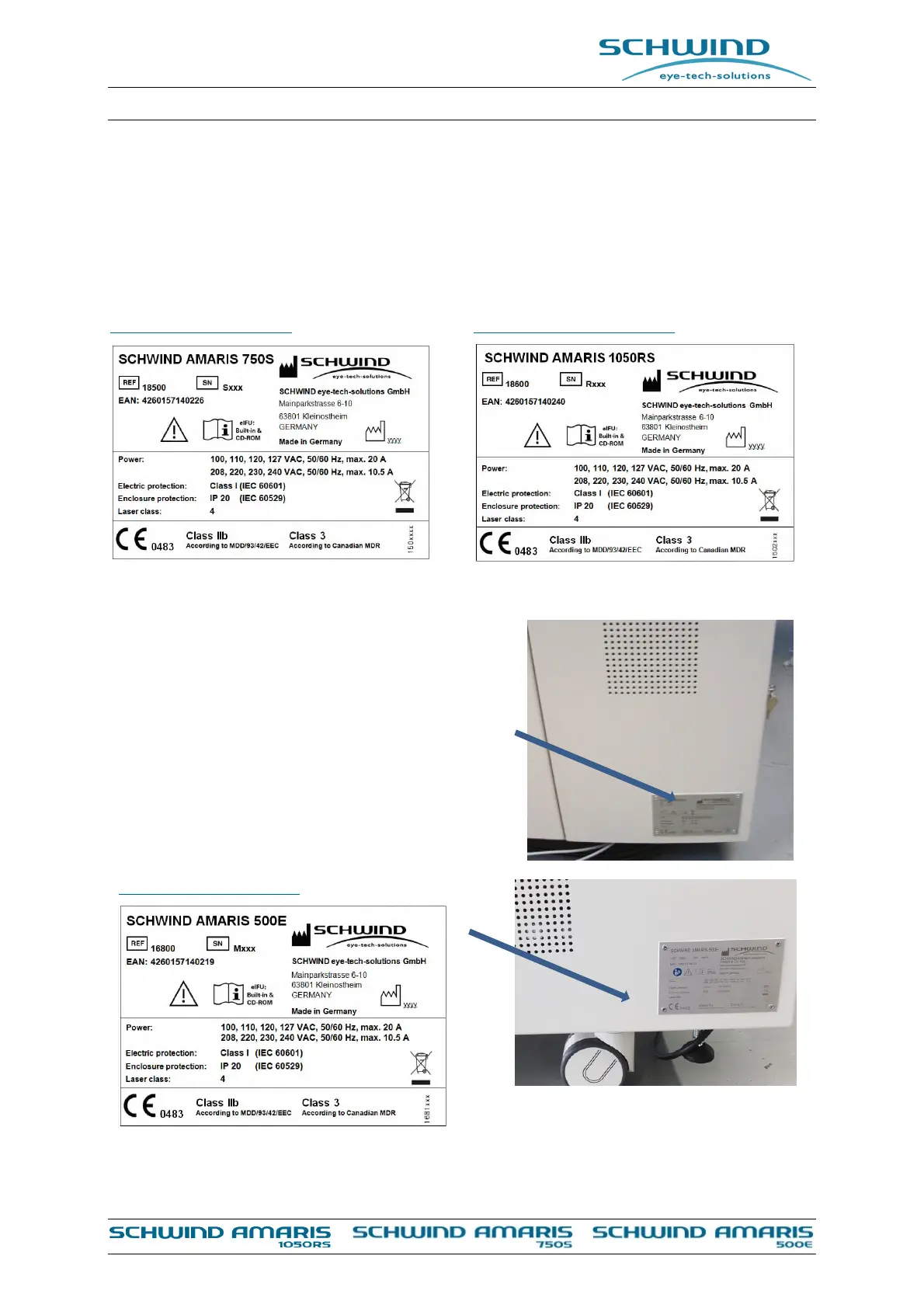 Figure 2-3: Identification labels AMARIS 750S / 1050RS