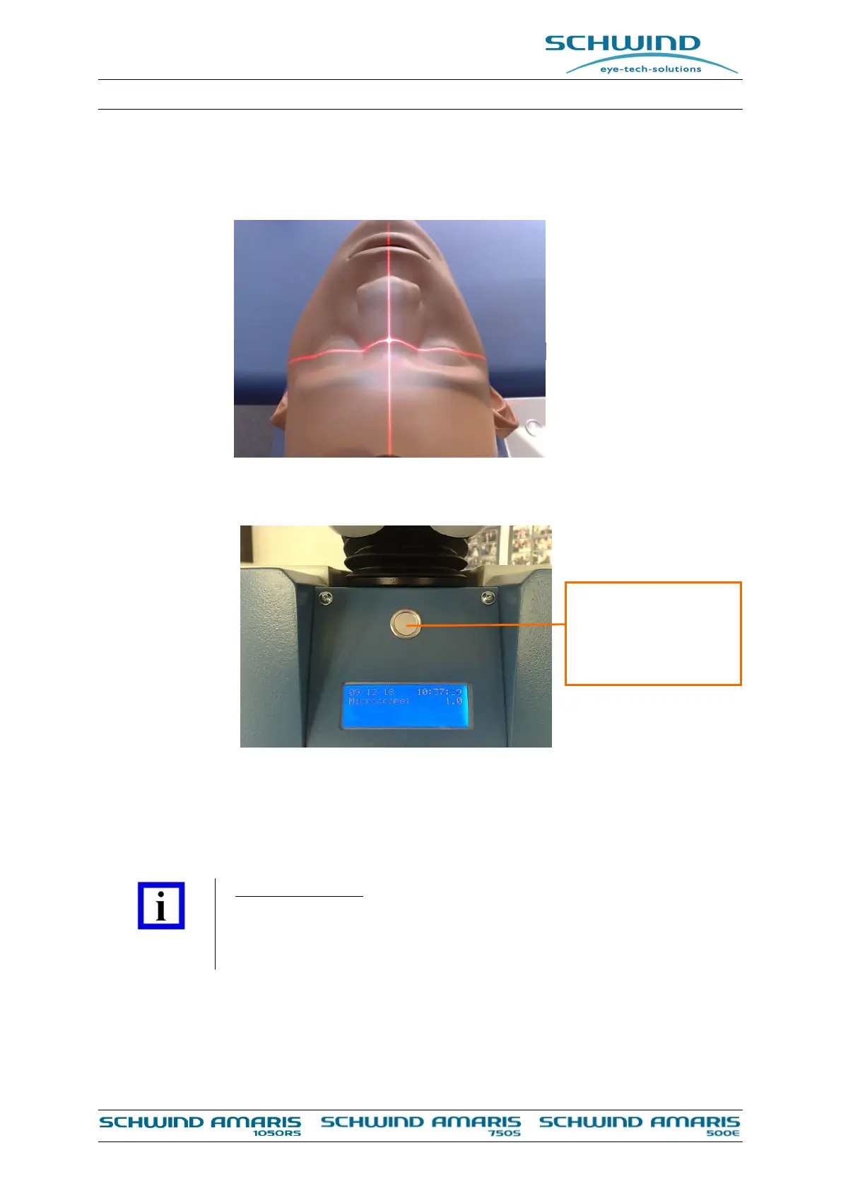(x-position) of the cross laser module and forehead, nose and chin should match with the vertical