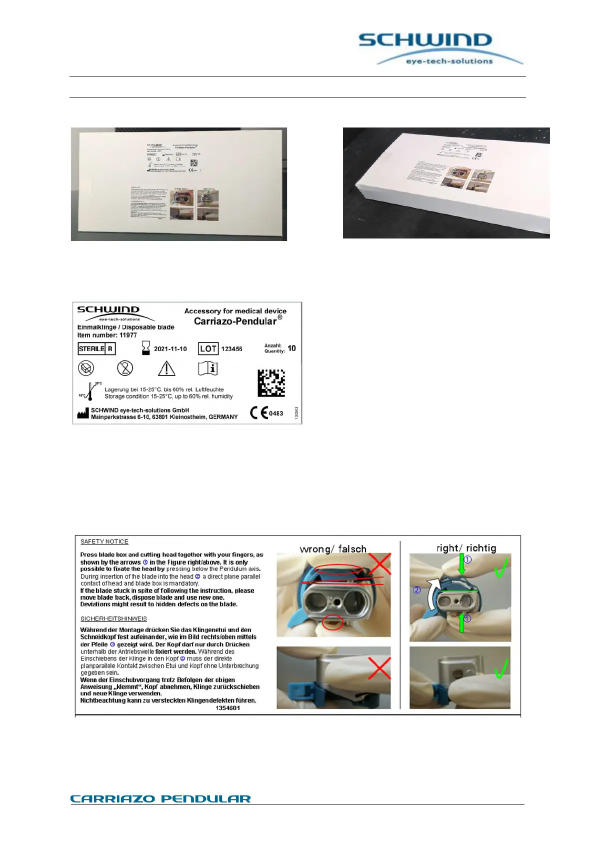 Figure 2-8: Example of type label Carriazo-Pendular disposable blades – equal to secondary packaging