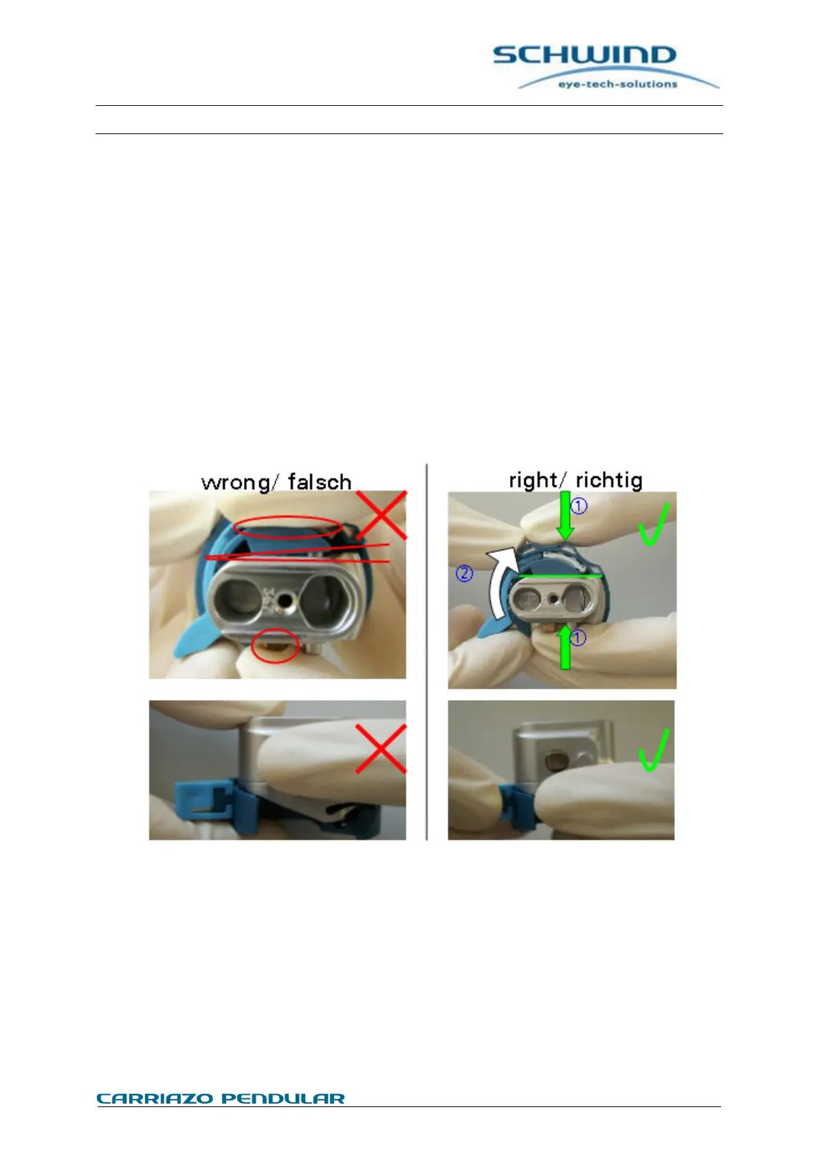 The assembly of the new disposable blade is described in the Pendular User Information No. 01-