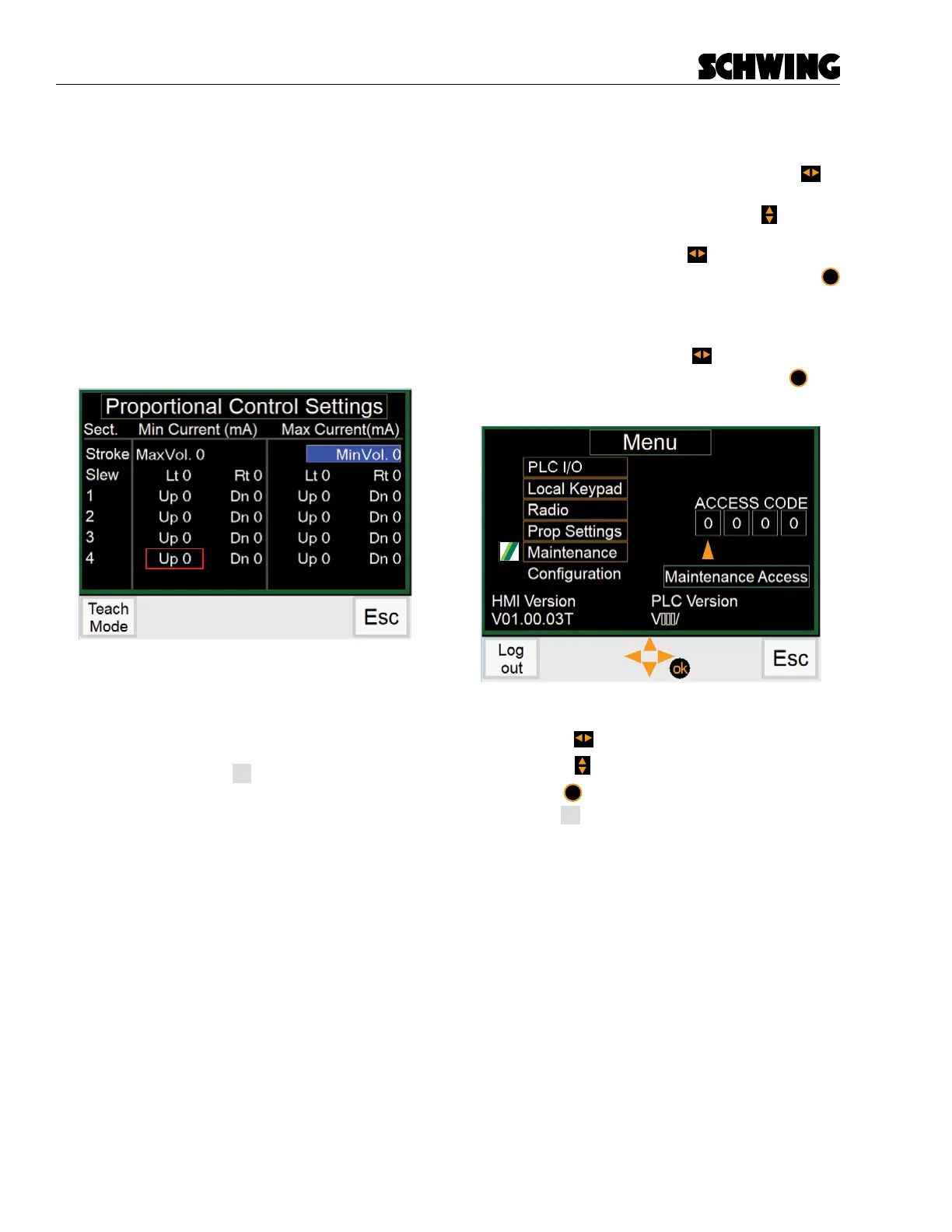 Proportional Settings Screen (Teach Mode)