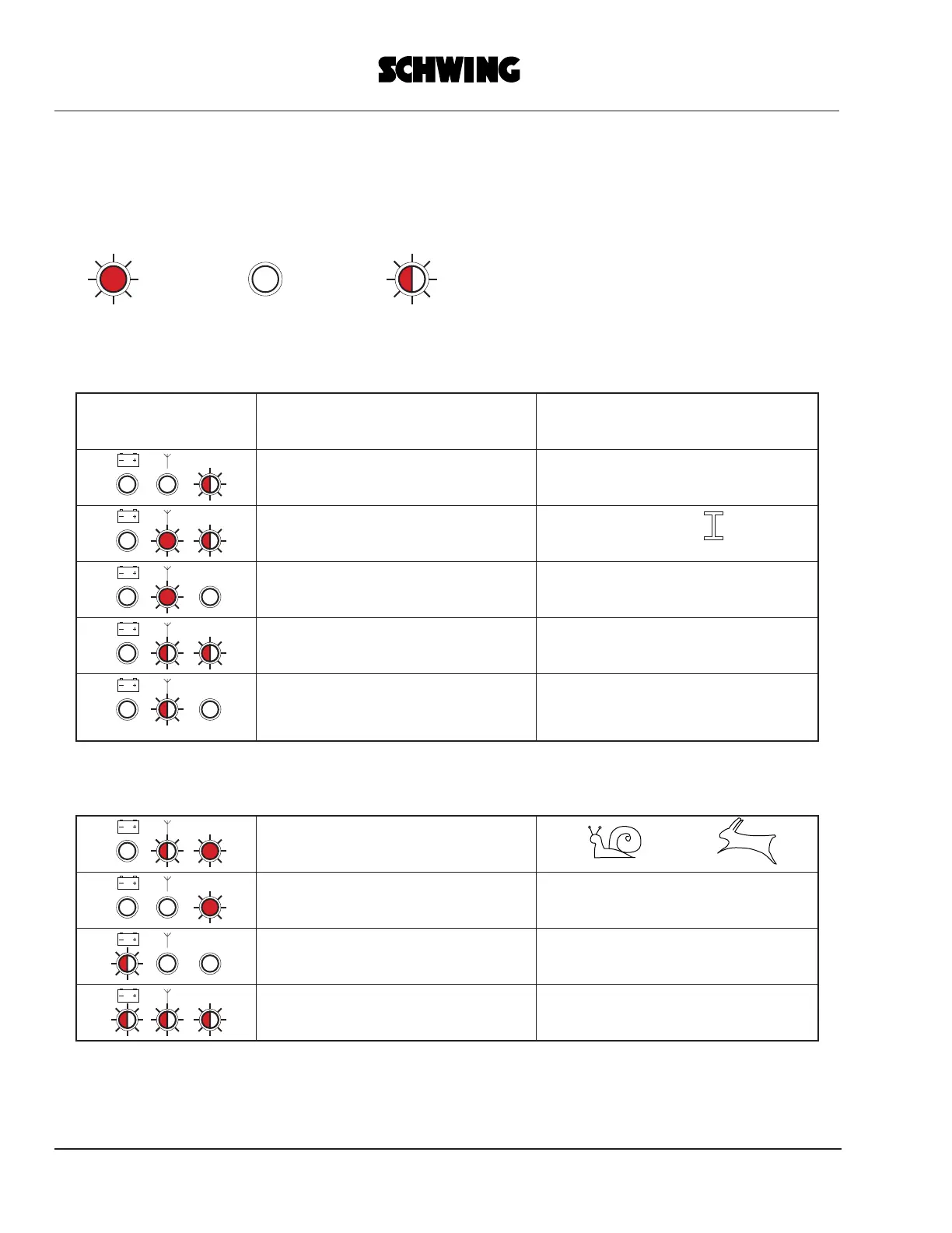 The light-emitting diodes indicate different operational states and malfunctions.