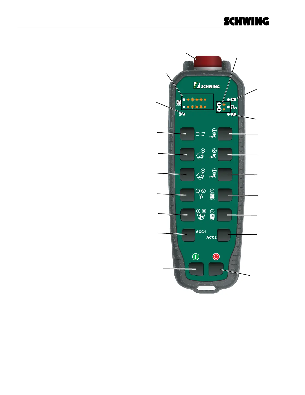 The radio remote includes the following lights and but-