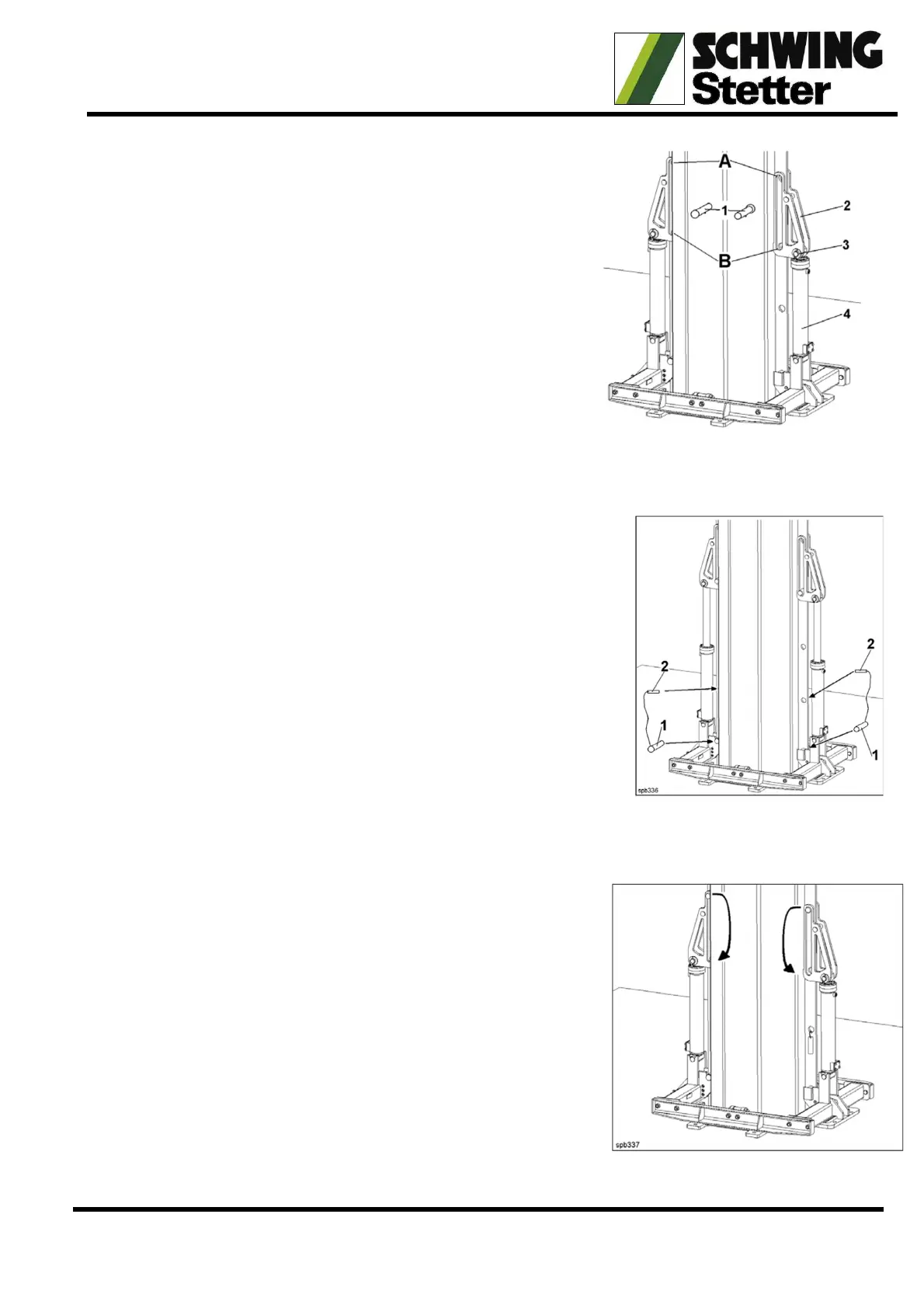 4. When the climbing cylinders are fully extended, insert a supporting pin 1 (Fig.
