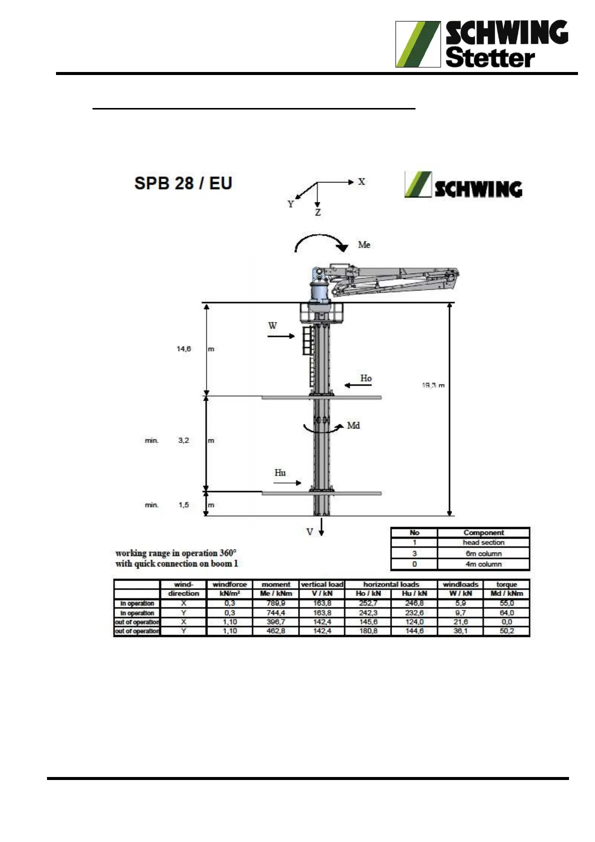 Schwing SPB 28 - SPB 28 Load Drawing: 3.2 m Slab Distance (No Counterweight)