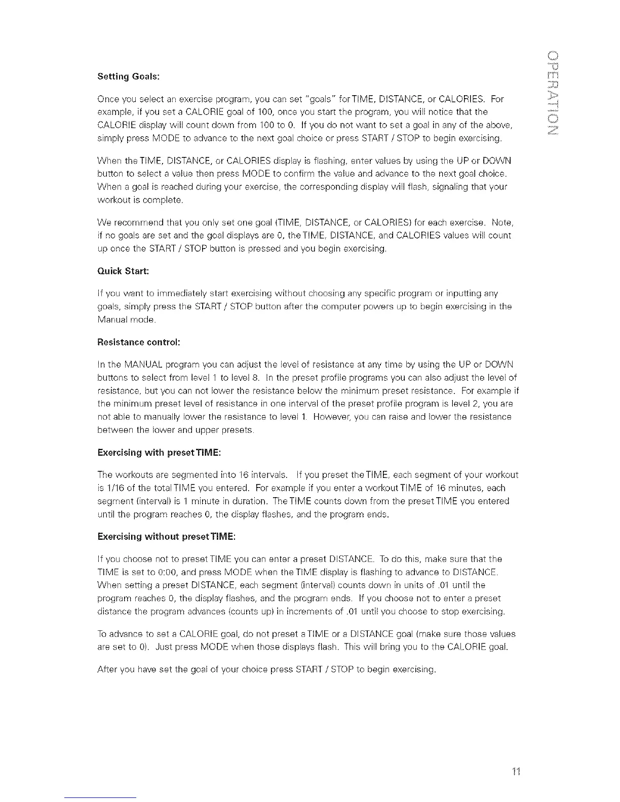 goals, simply press the START / STOP button after the computer powers up to begin exercising in the