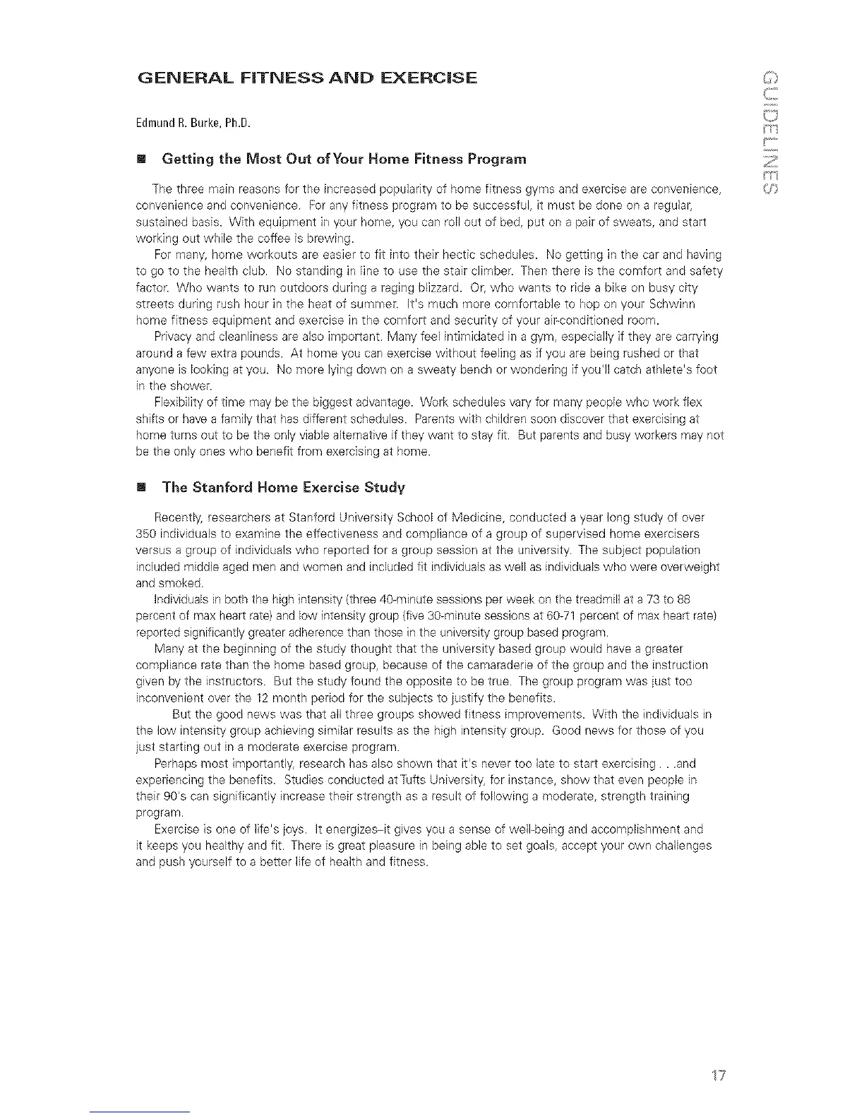 sustained basis. With equipment in your home, you can roll out of bed, put on a pair of sweats, and start