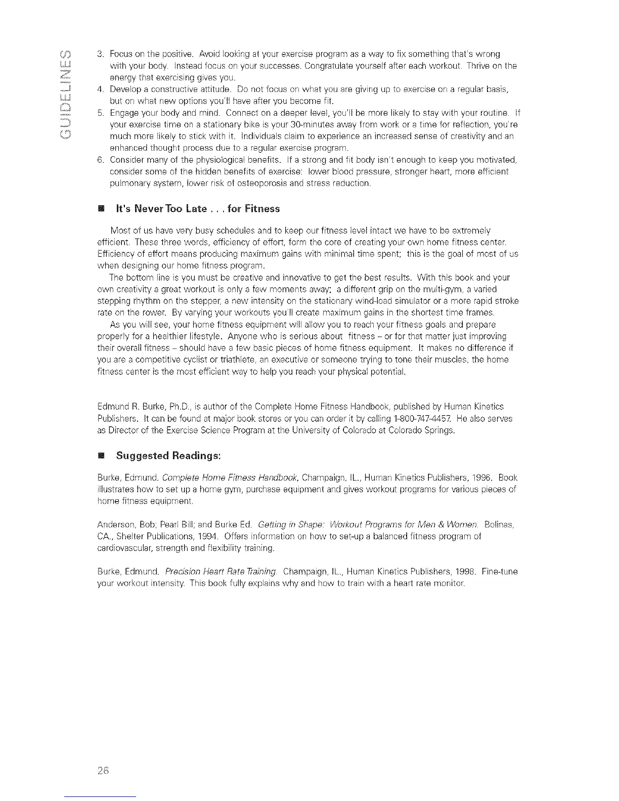 Edmund R. Burke, Ph.D., is author of the Complete Home Fitness Handbook, published by Human Kinetics