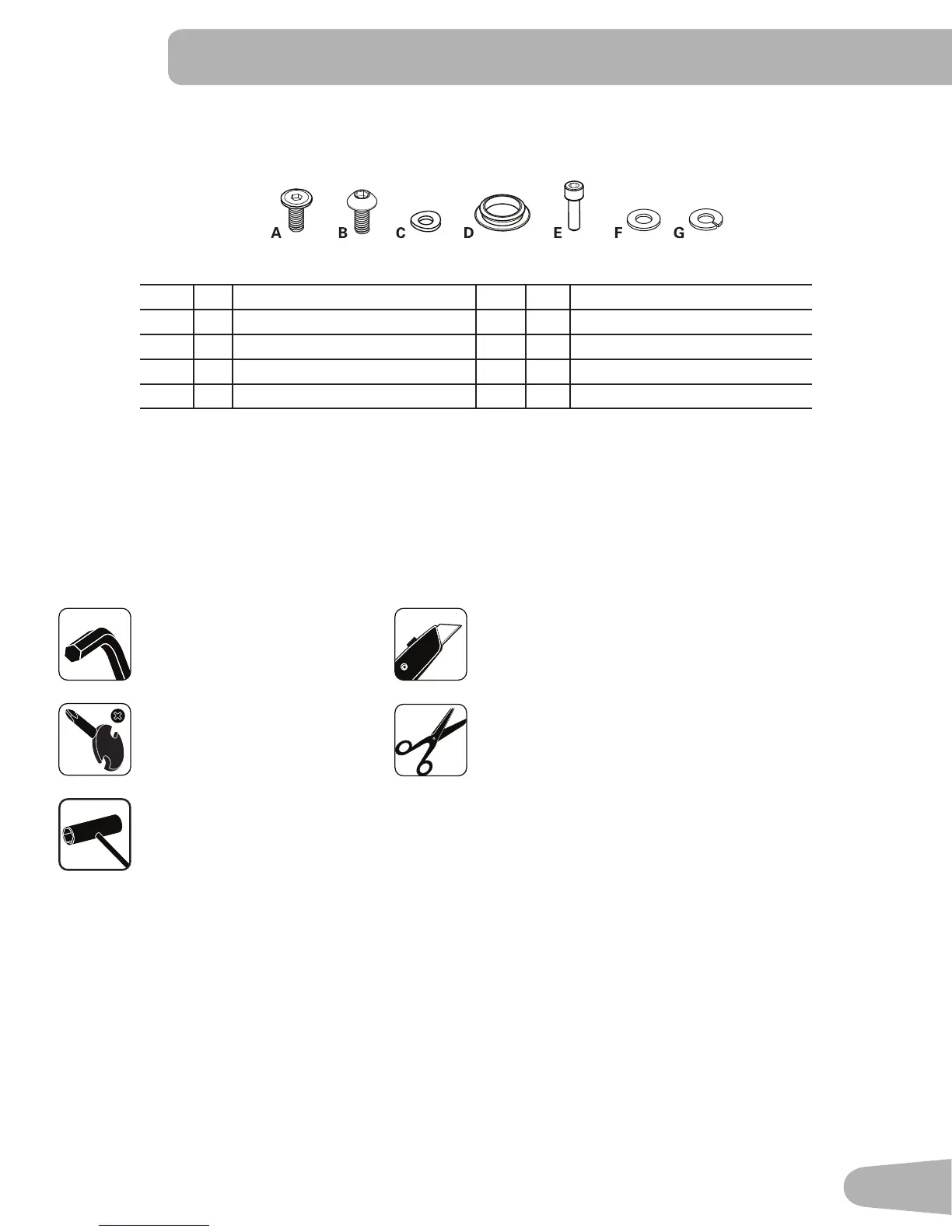A 4 FlatHeadHexScrewM8x16 E 1 HexBoltM7x30