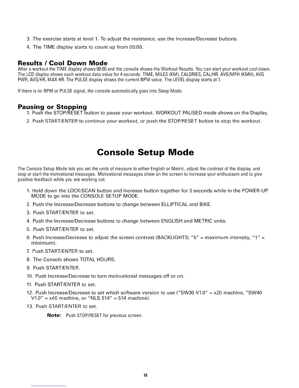 2. Push START/ENTER to continue your workout, or push the STOP/RESET button to stop the workout.