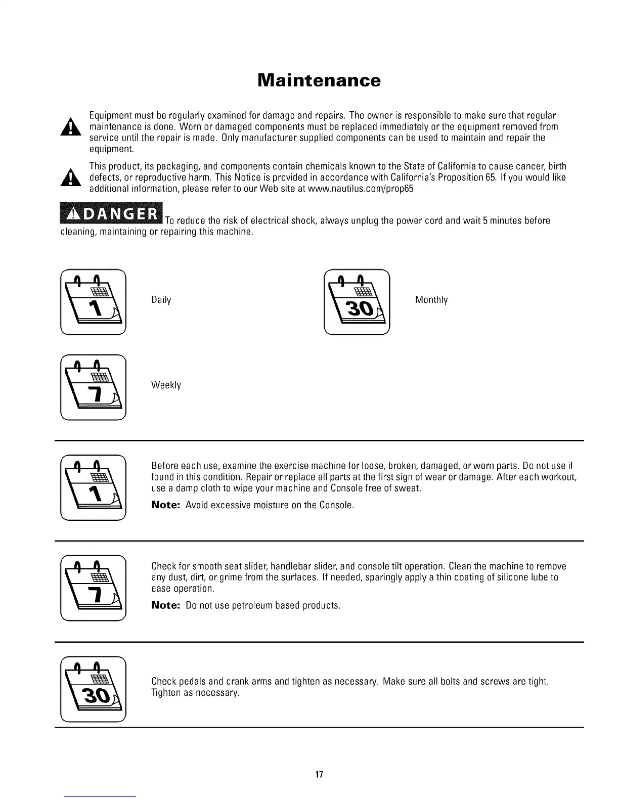 additional information, please refer to our Web site at www.nautilus.com/prop65
