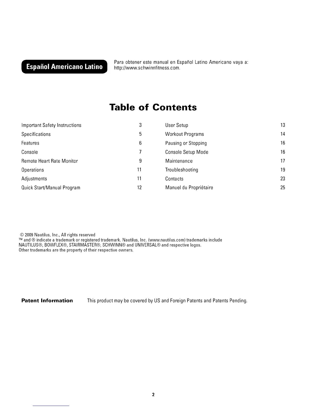 NAUTILUS®, BOWFLEX®,STAIRMASTER®,SCHWlNN® and UNIVERSAL®and respective Iogos.