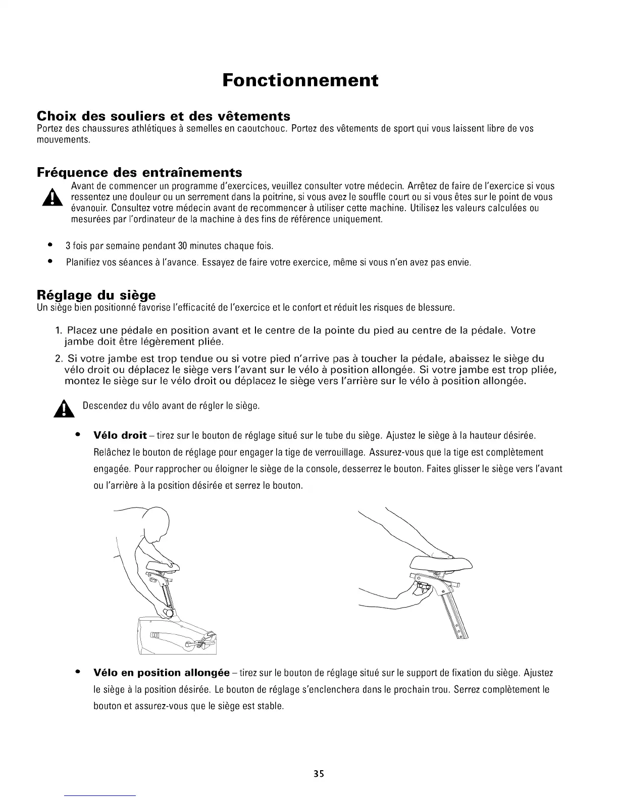 Un si_ge bien positionn6 favorise I'efficacit6 de I'exercice et le confort et r6duit les risques de blessure.