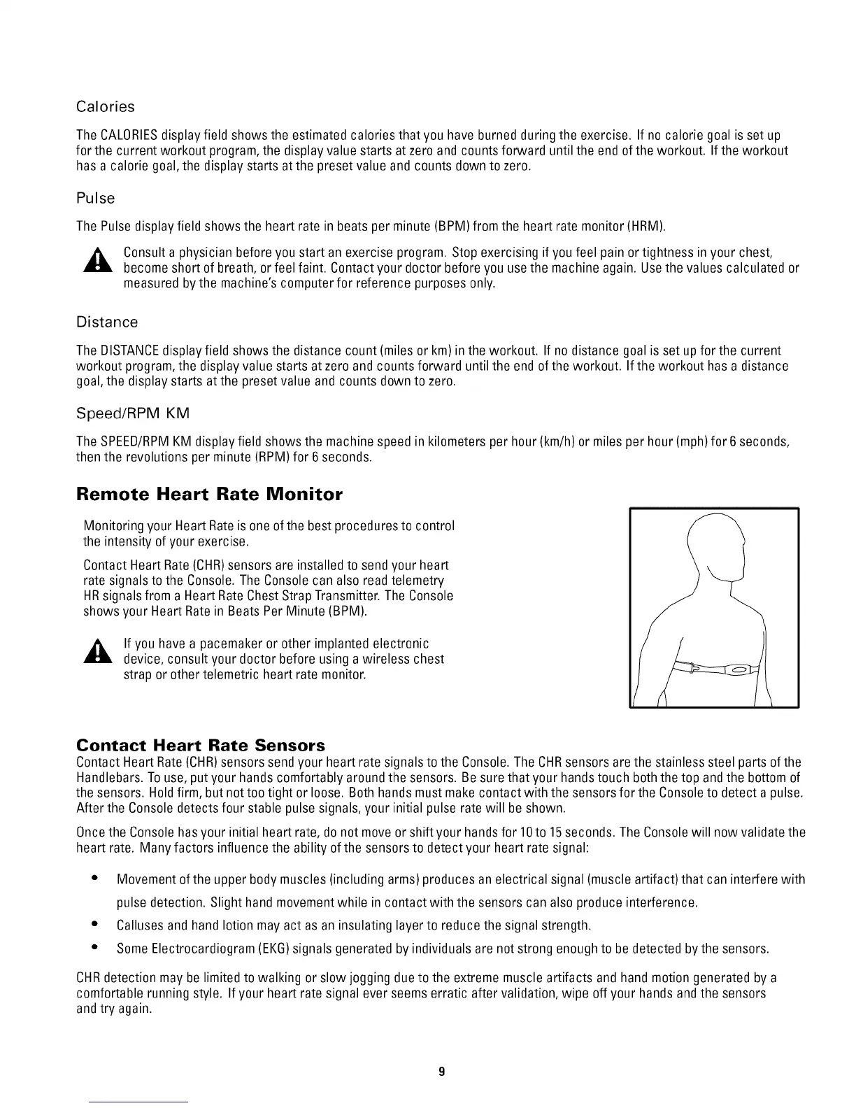 Contact Heart Rate(CHR)sensors sendyour heart rate signals to the Console.TheCHRsensors arethe stainless steel parts of the