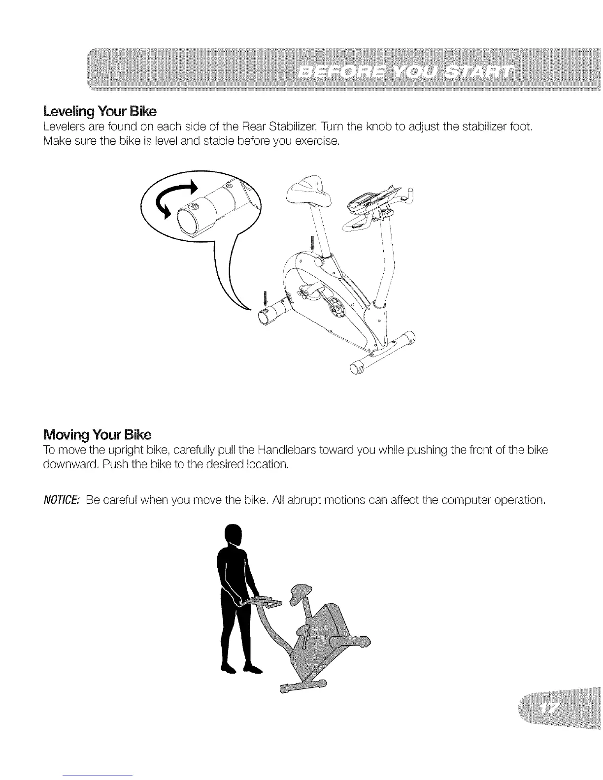 NOTICE:Be careful when you move the bike. All abrupt motions can affect the computer operation.