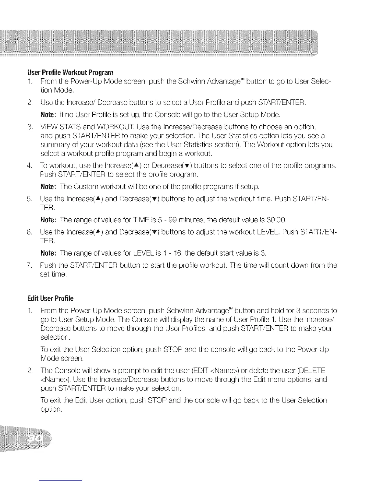 1. From the Power-Up Mode screen, push the Schwinn Advantage TM button to go to User Selec-