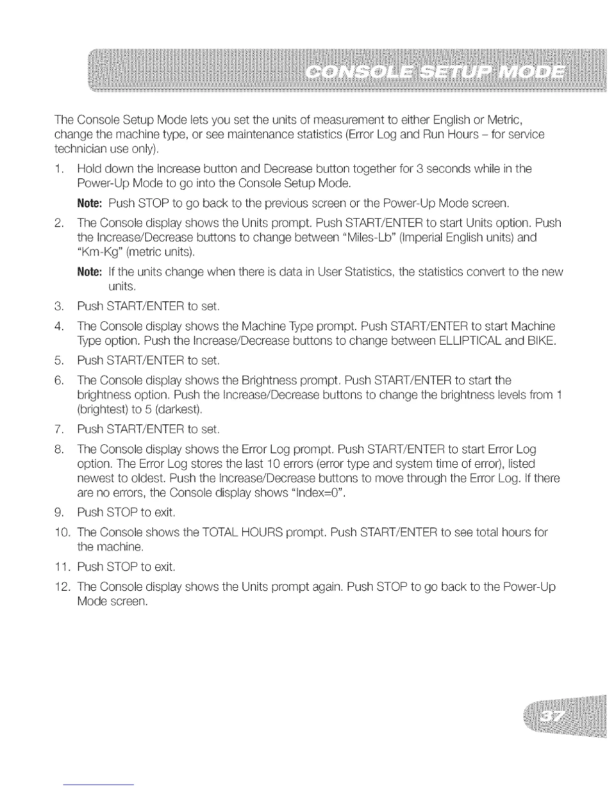 Type option. Push the Increase/Decrease buttons to change between ELLIPTICAL and BIKE.