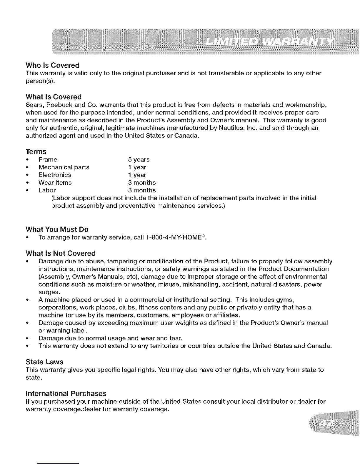 only for authentic, original, legitimate machines manufactured by Nautilus, inc. and sold through an