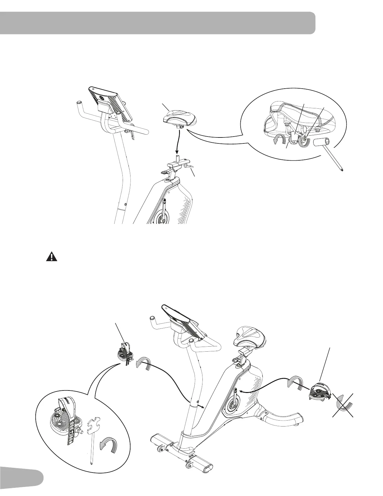 NOTICE: Do not loosen the Seat nuts (14b) on the Seat bracket (14a) before sliding the Seat onto the post. Be sure the