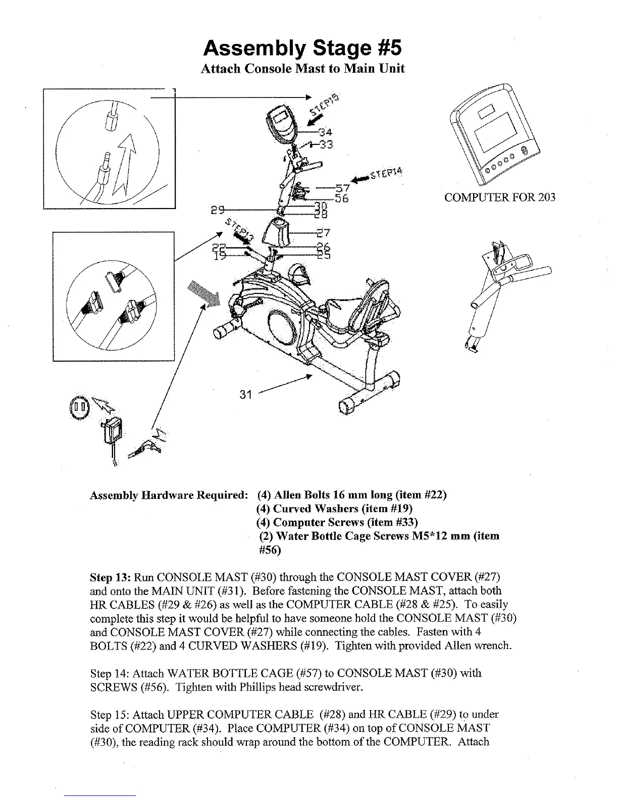 Schwinn 201 - Assembly Stage #5: Console Mast to Main Unit