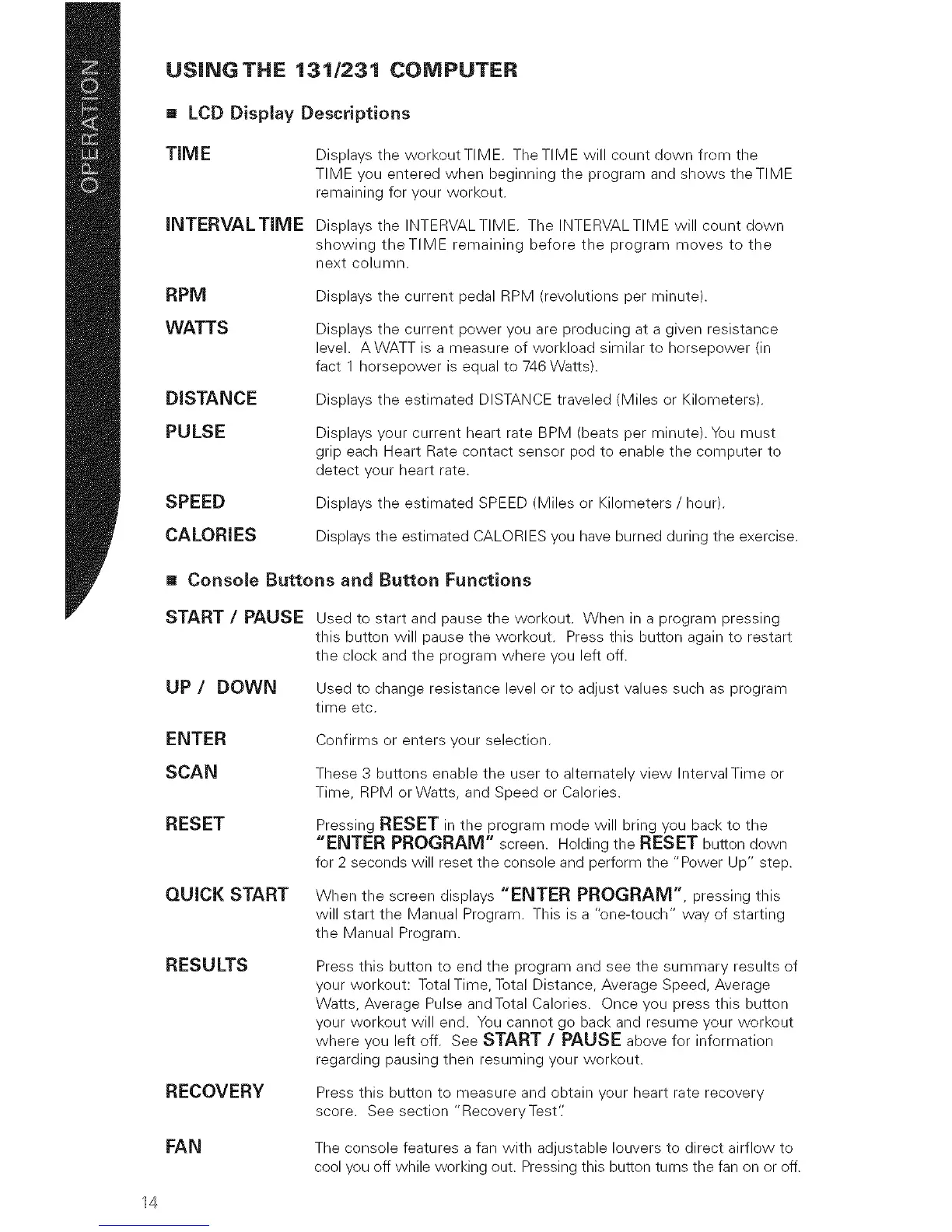 Watts, Average Pulse andTotal Calories. Once you press this button