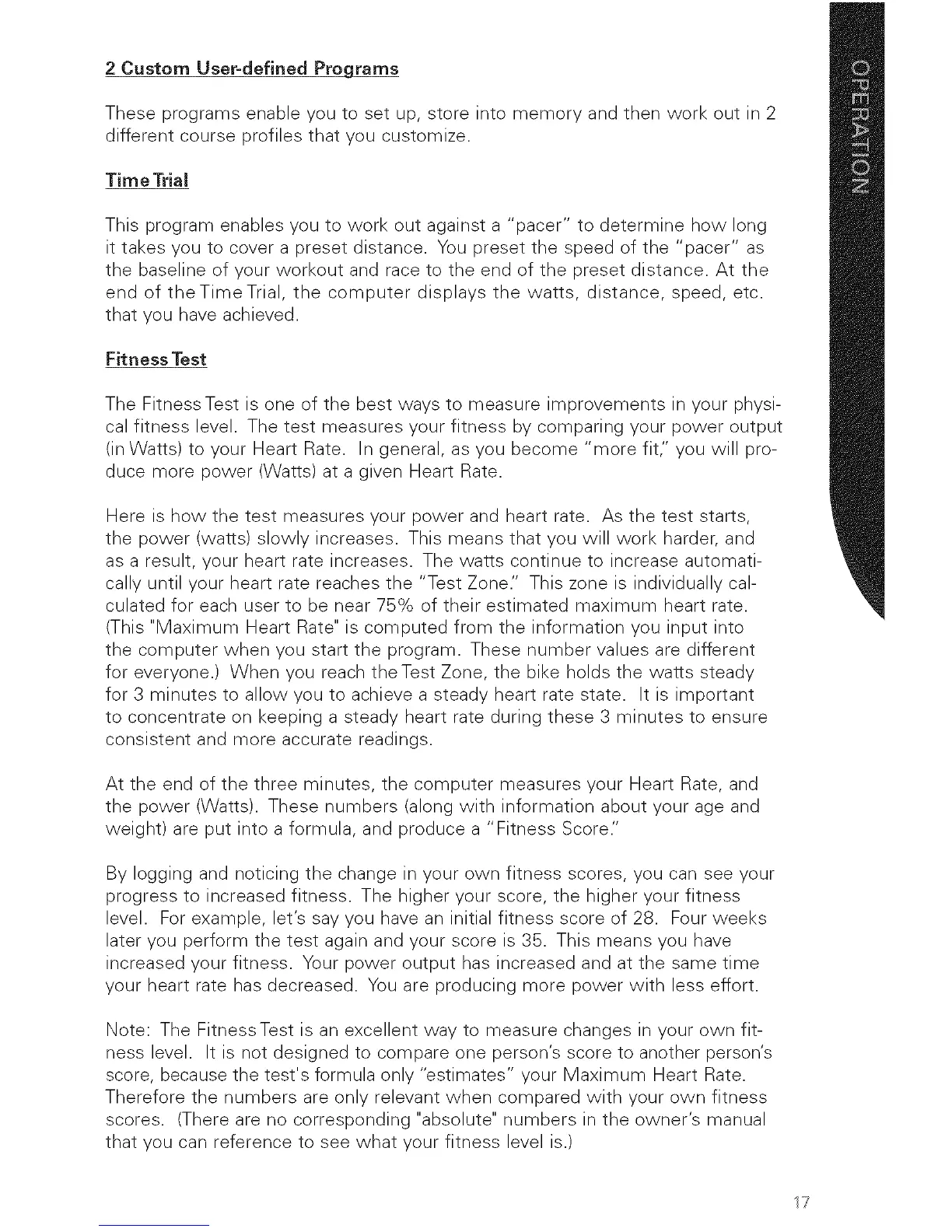 (in Watts) to your Heart Rate. In general, as you become "more fit," you will pro-