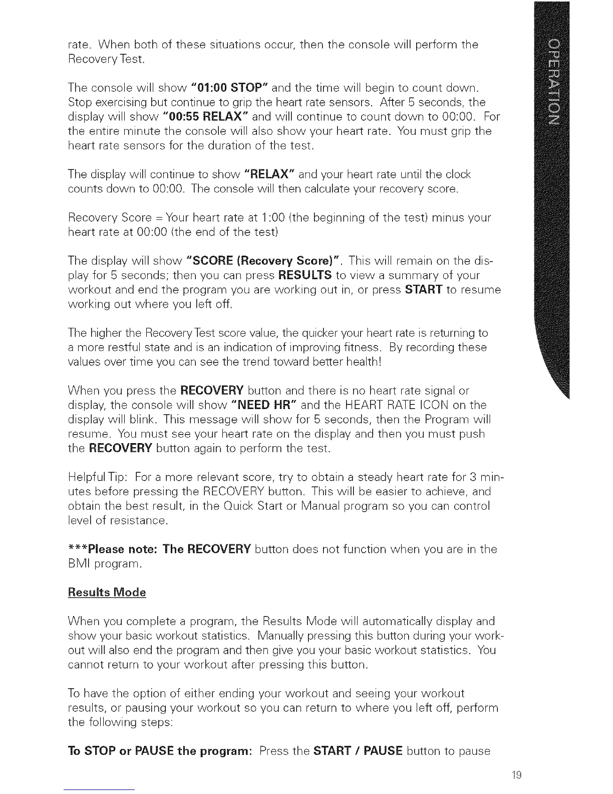 The display will show "SCORE (Recovery Score)". This will remain on the dis-