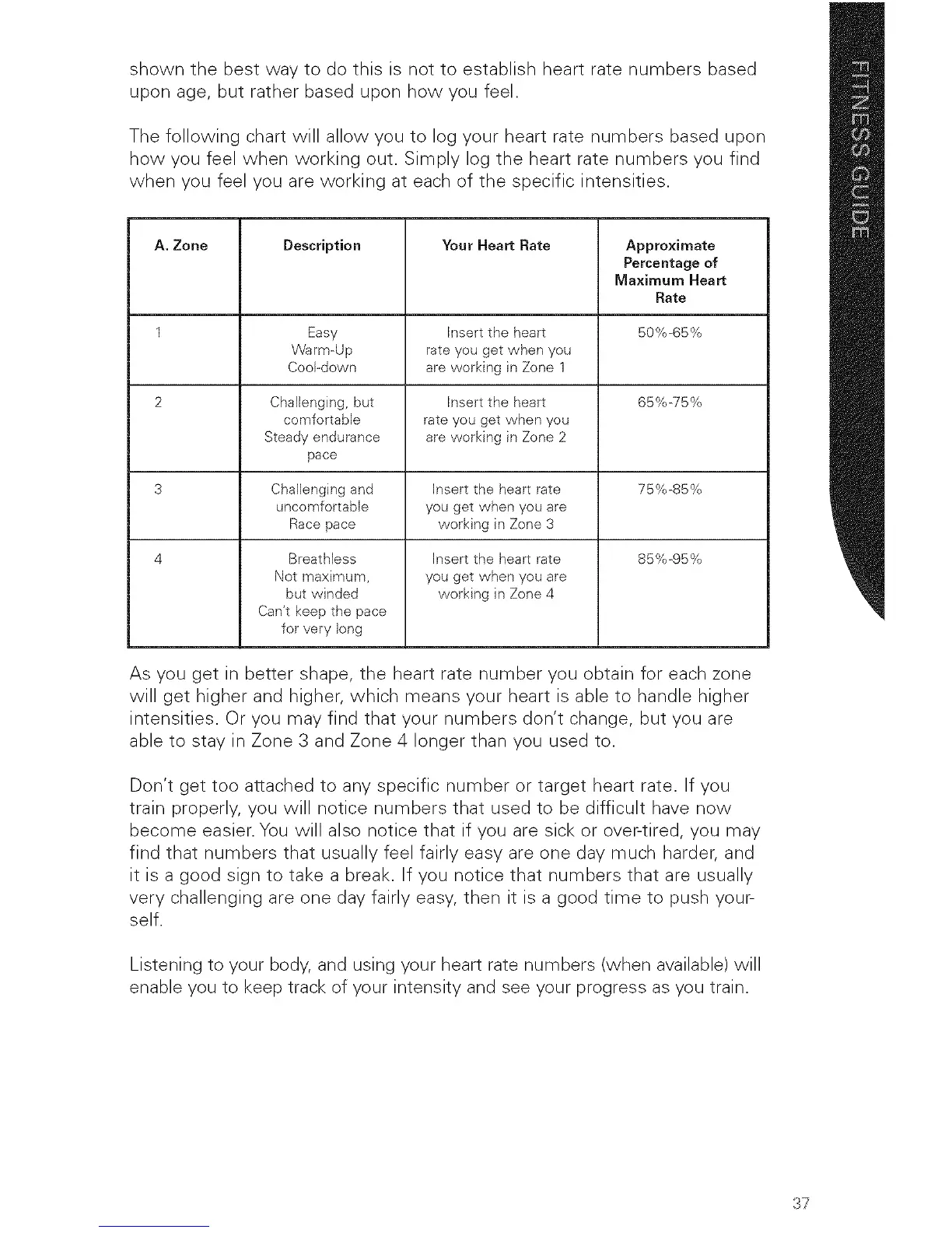 how you feel when working out. Simply log the heart rate numbers you find
