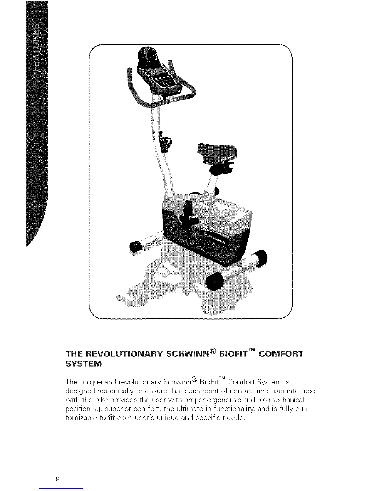 The unique and revolutionary Schwinn ® BioFit TM Comfort System is