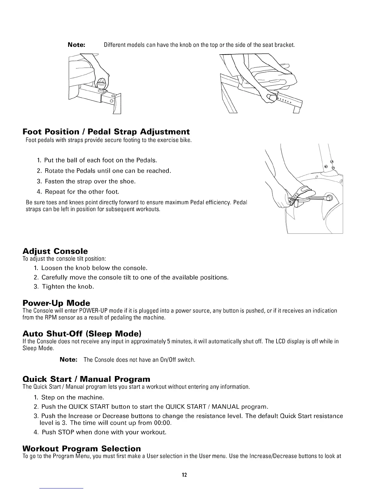 Be suretoes and knees point directly forward to ensure maximum Pedal efficiency. Pedal