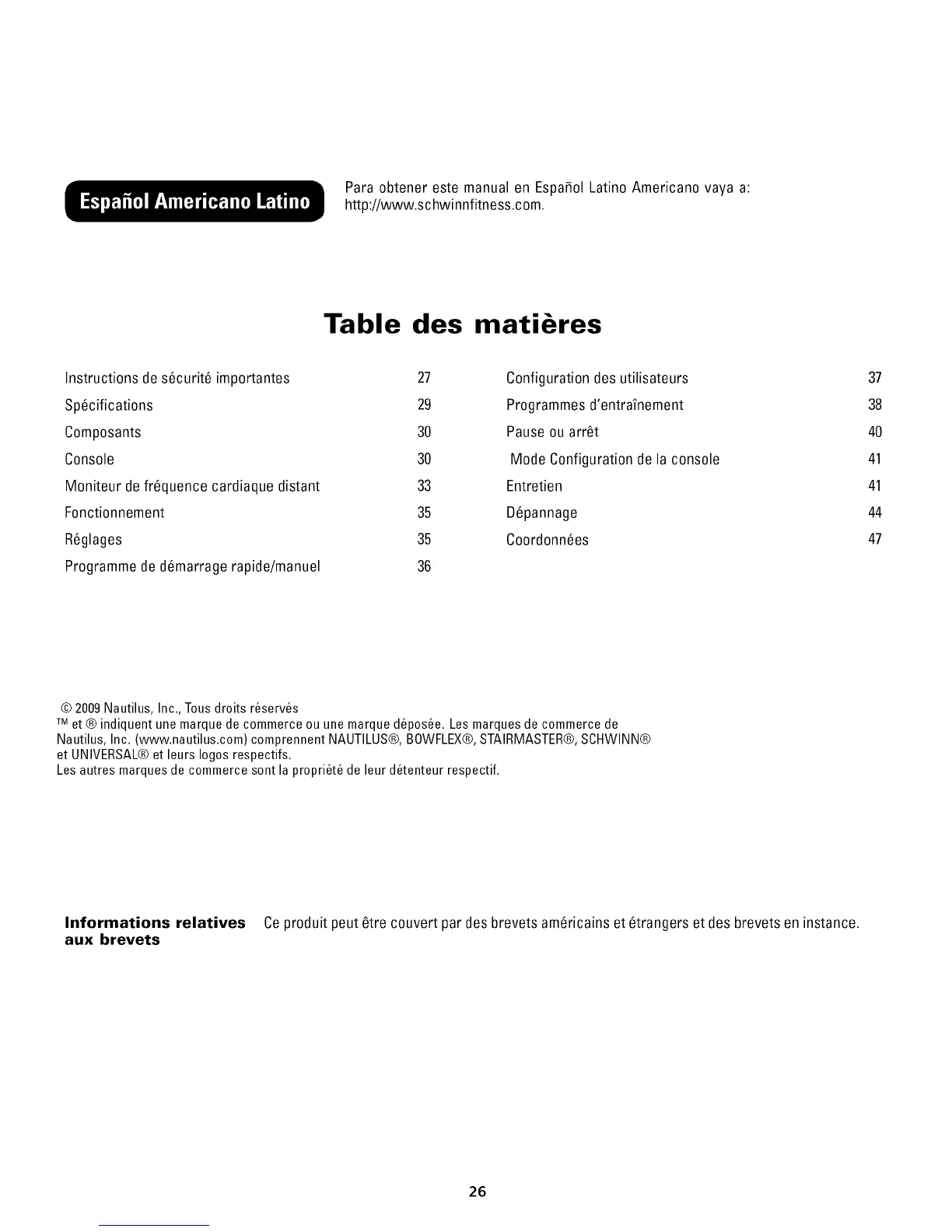 © 2009Nautilus, Inc., Tous droits r6serv6s