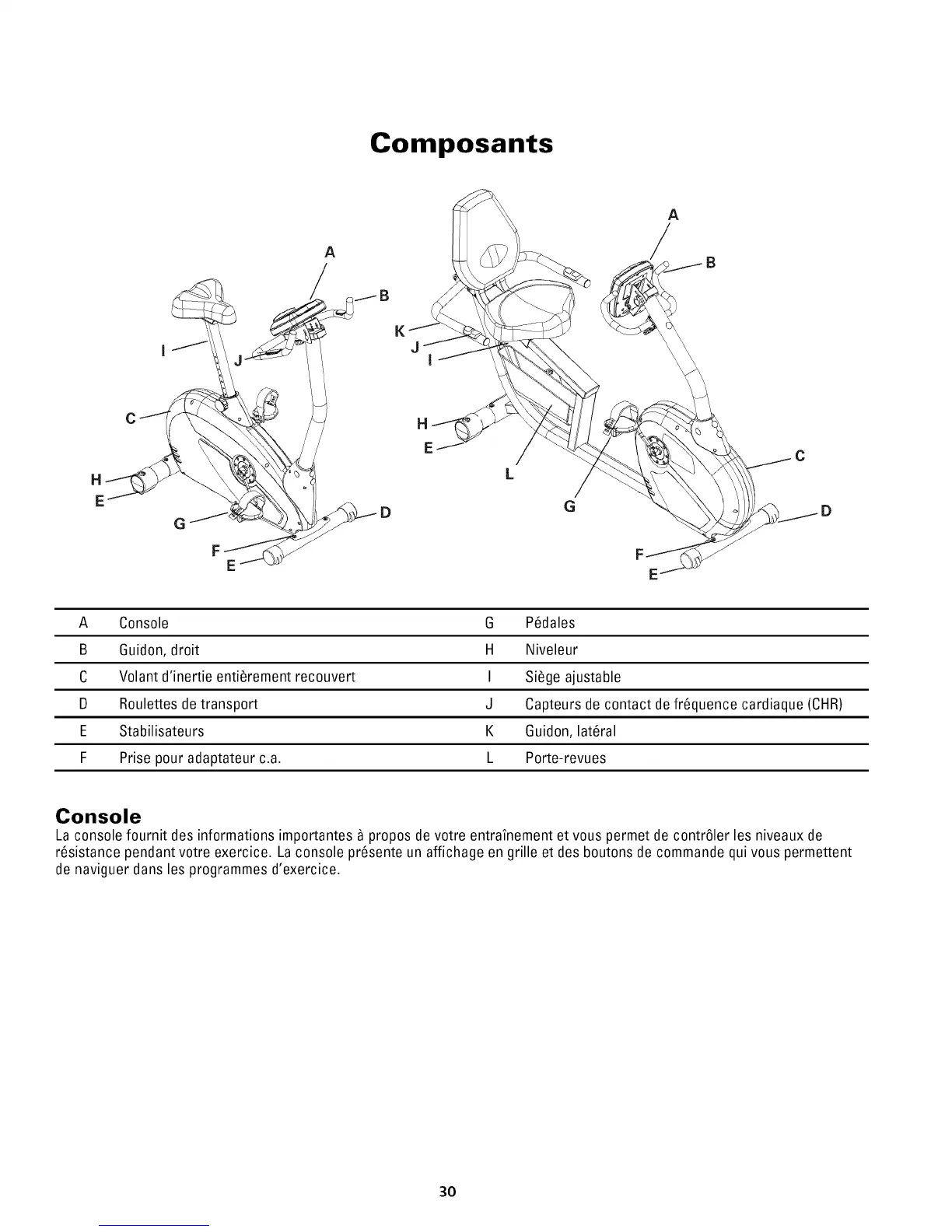 La console fournit des informations importantes _ propos de votre entrafnement et vous permet de contrSler les niveaux de