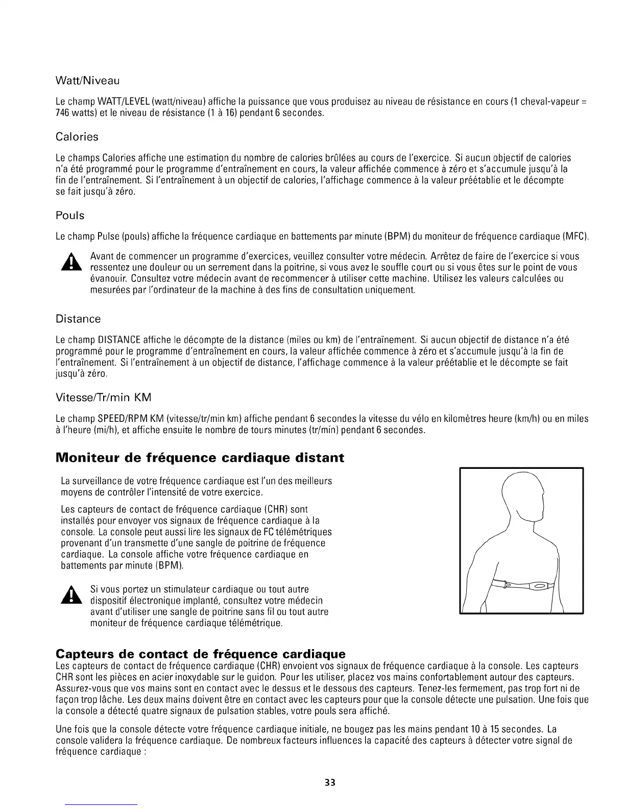 Les capteurs de contact de fr6quence cardiaque (CHR)envoient vos signaux defr6quence cardiaque _ la console. Lescapteurs