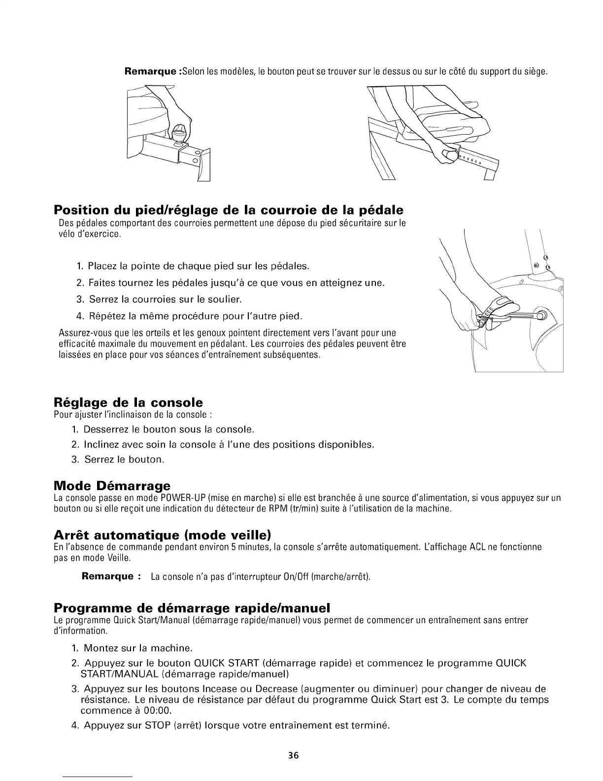 Position du pied/r_glage de la courroie de la p_dale
