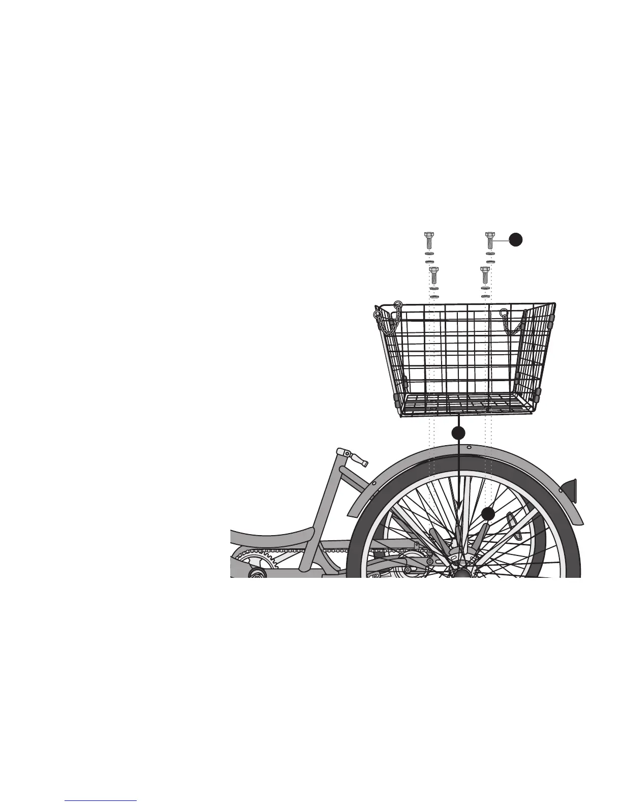 3. Insert the screws and washer through the basket
