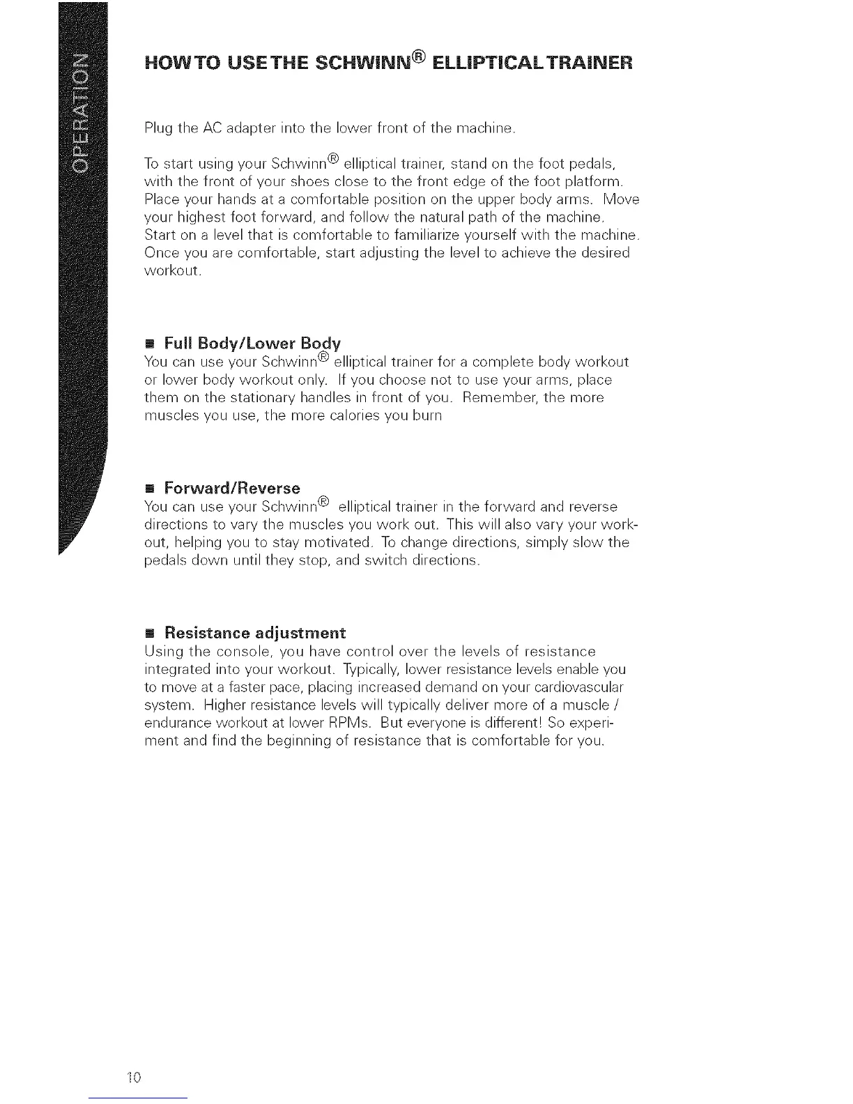 HOWTO USETHE SCHW|NN ® ELLiPTiCALTRAiNER