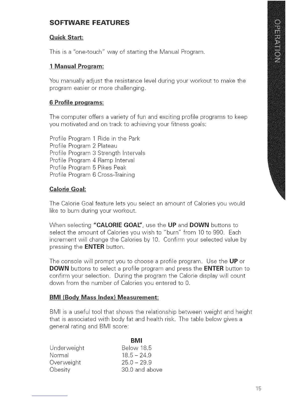 confirm your selection. During the program the Calorie display will count