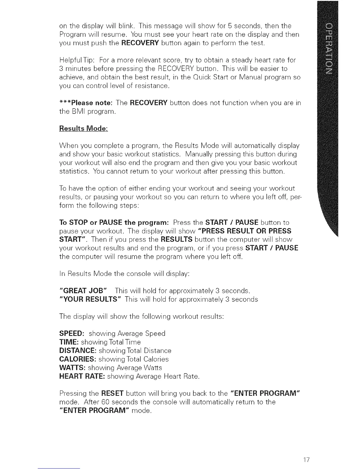your workout results and end the program, or if you press START / PAUSE