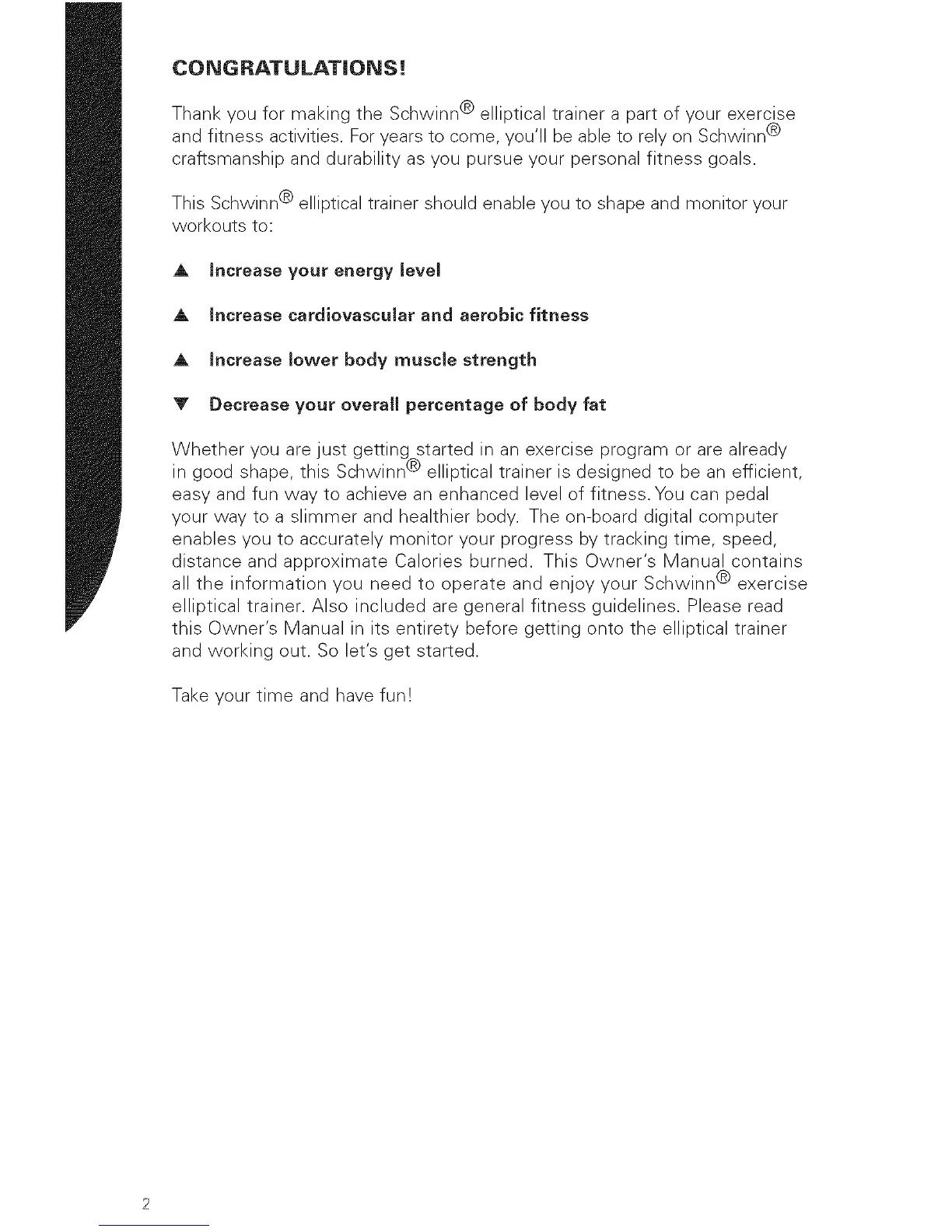 Thank you for making the Schwinn ® elliptical trainer a part of your exercise