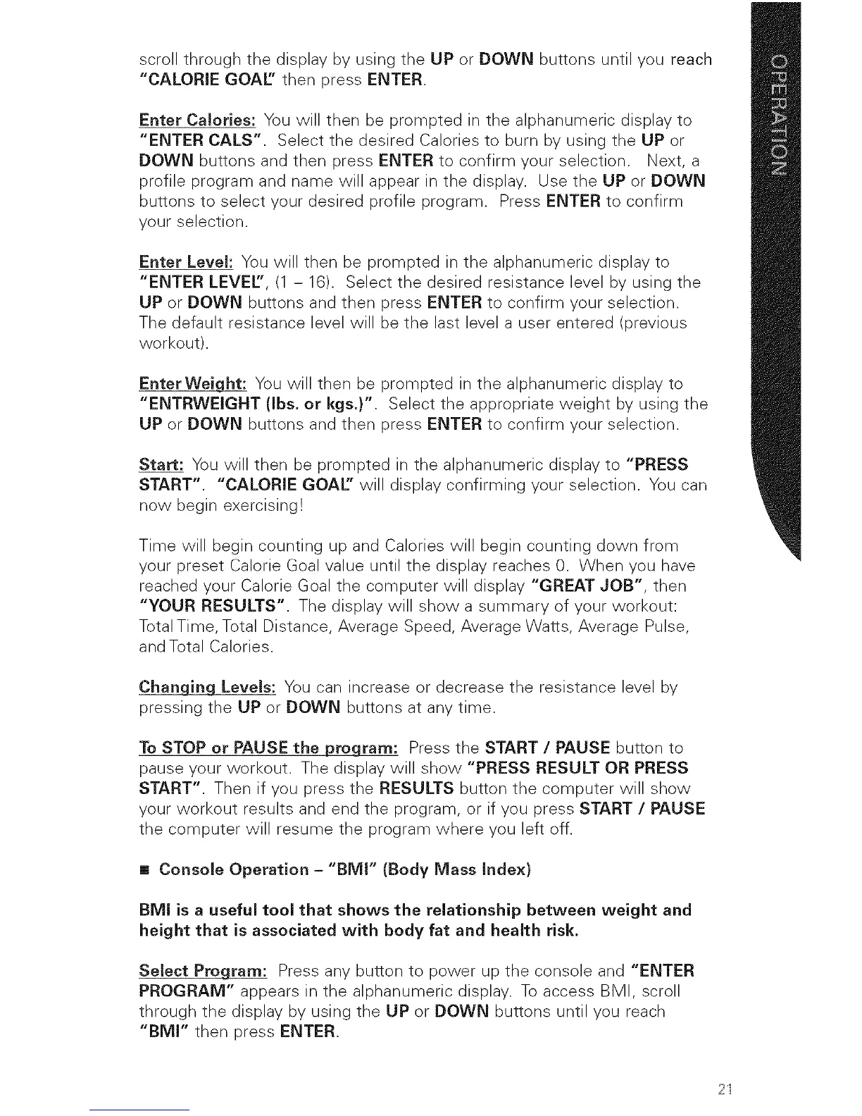 "ENTER CALS". Select the desired Calories to burn by using the UP or