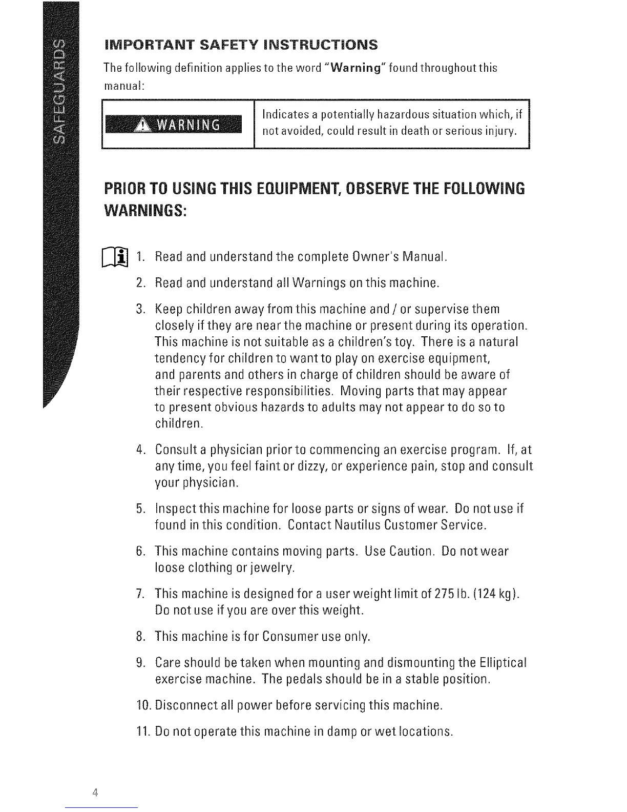 This machine is designed for a user weight limit of 275 lb. (124kg).