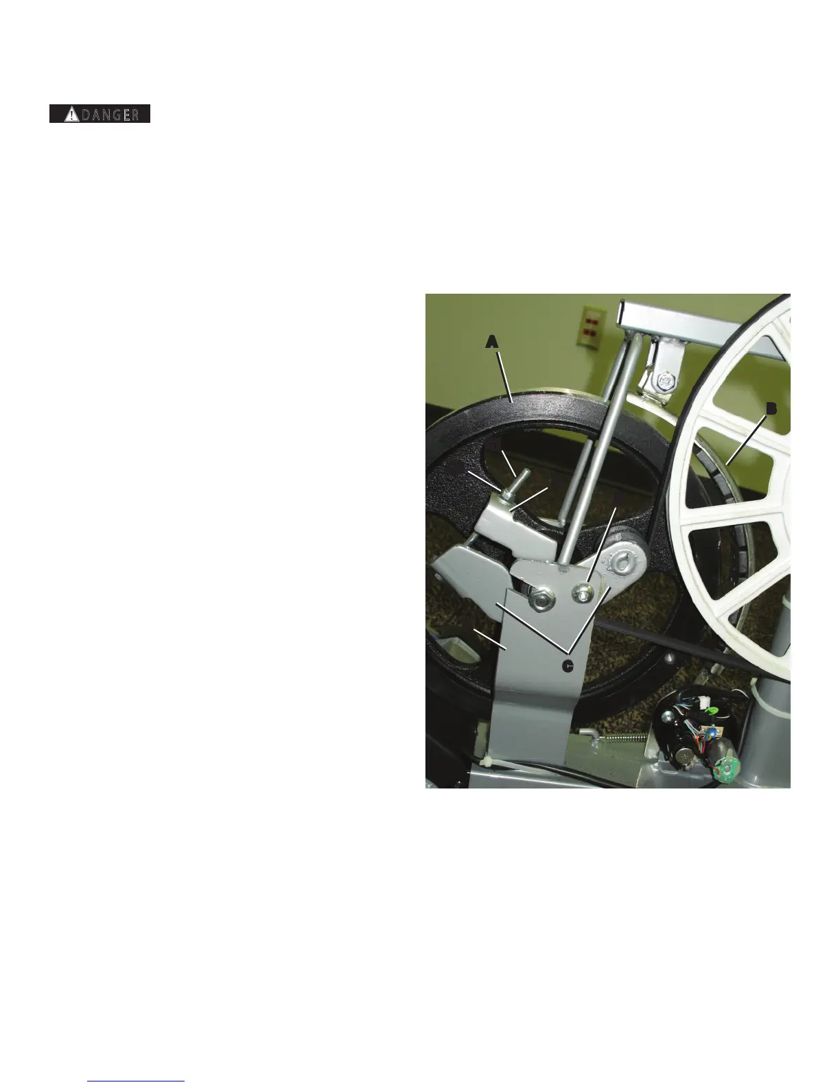 2. Insert 2.5” x 10” cardboard between the Flywheel (A) and the Brake