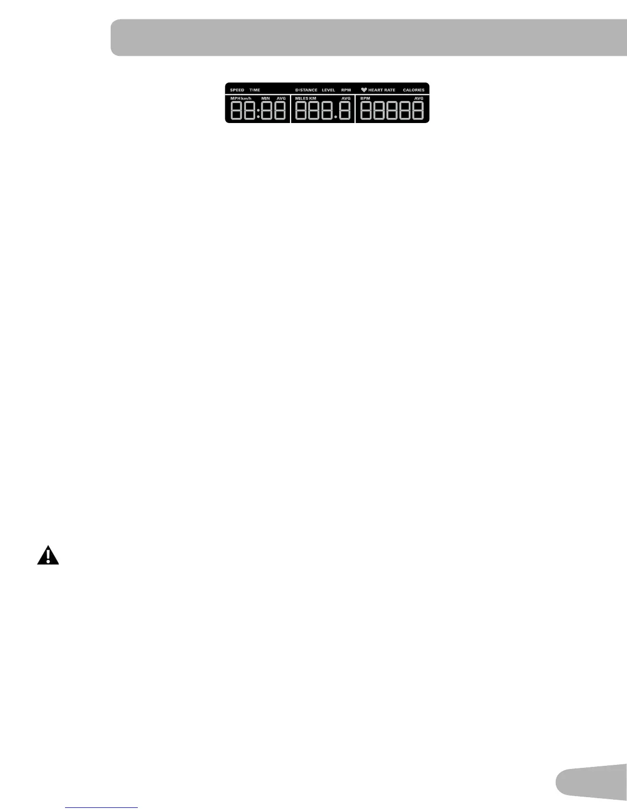 The Lower Display shows the Workout Values and can be customized for each User (Consult the “Edit User Profile” section of