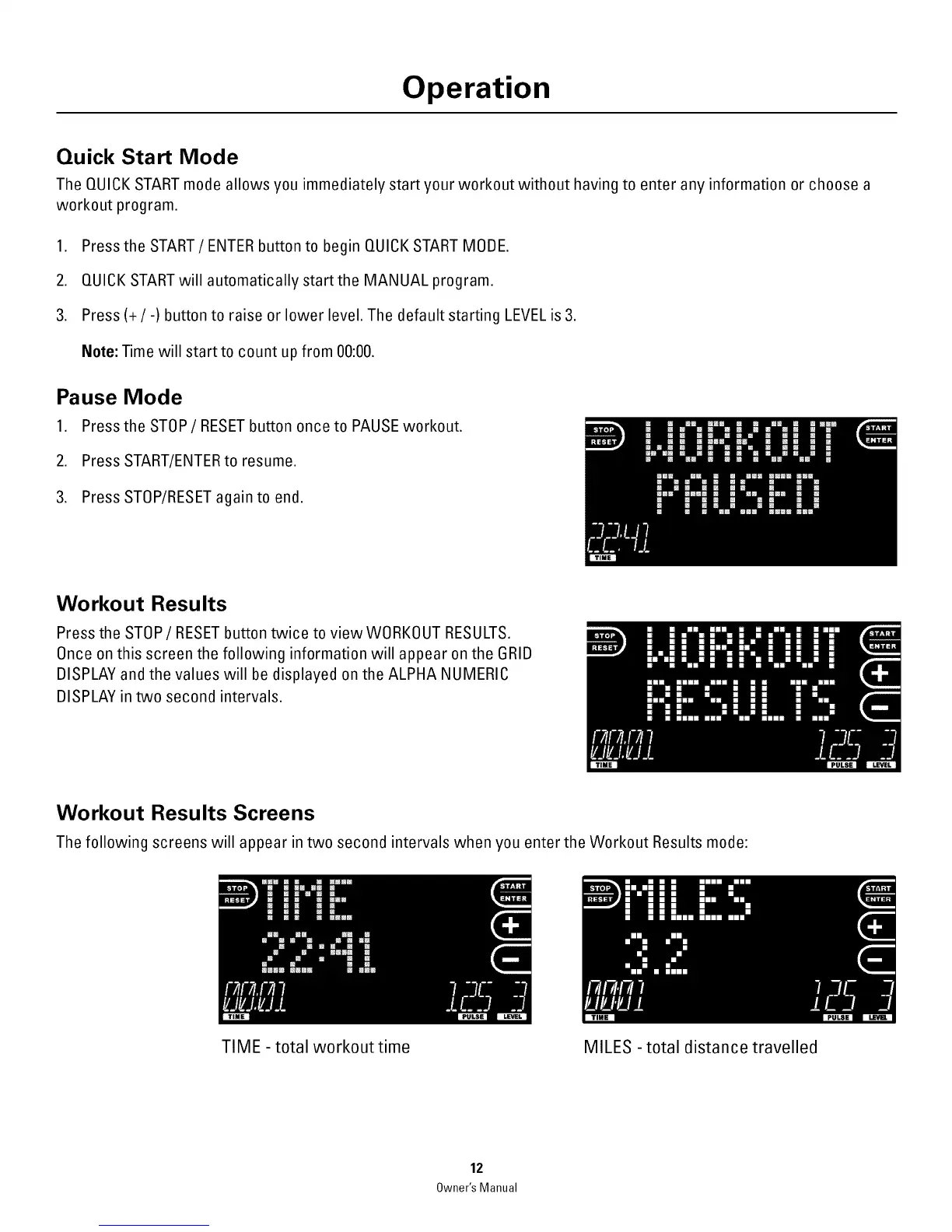 Press the STOP/RESET button twice to view WORKOUT RESULTS.