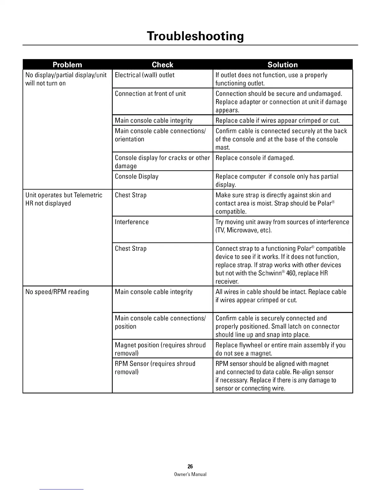 but not with the Schwinn ®460, replace HR