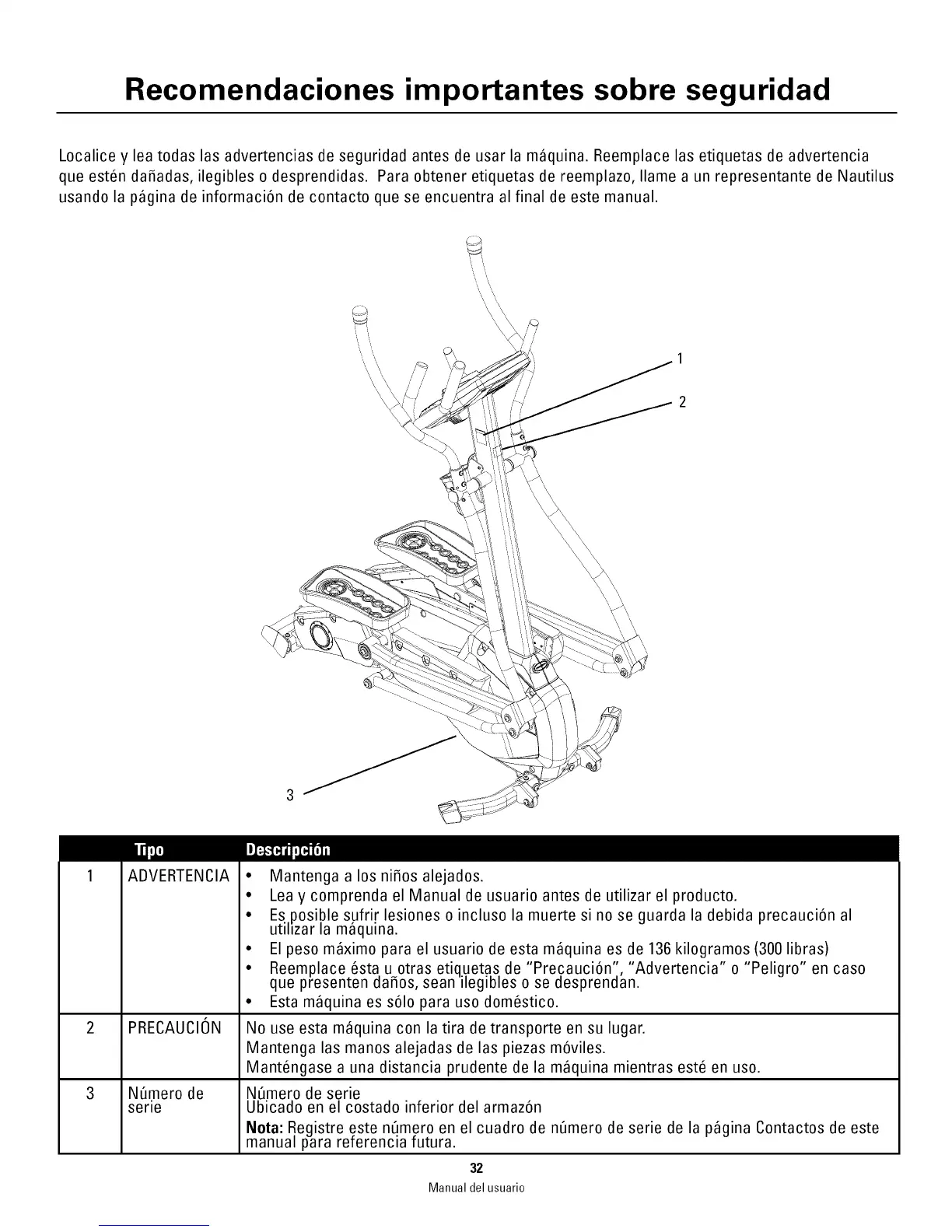que est_n da_adas, ilegibles o desprendidas. Para obtener etiquetas de reemplazo, Ilame a un representante de Nautilus