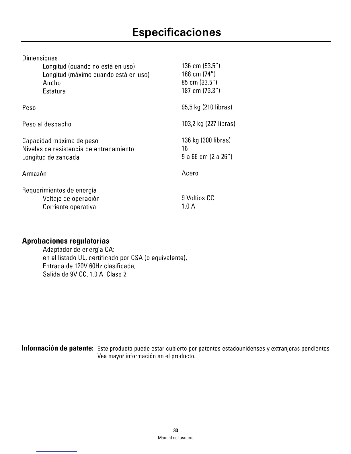Informacion de patente: Este producto puede estar cubierto por patentes estadounidenses y extranjeras pendientes.