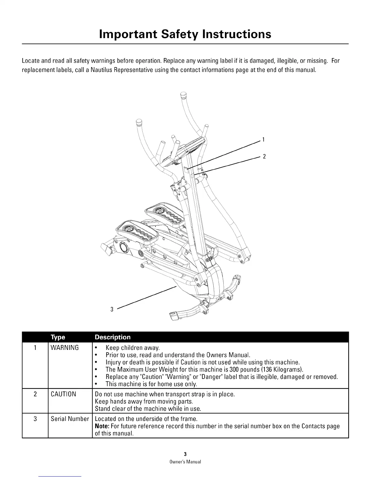 • The Maximum User Weight for this machine is 300 pounds (136 Kilograms).