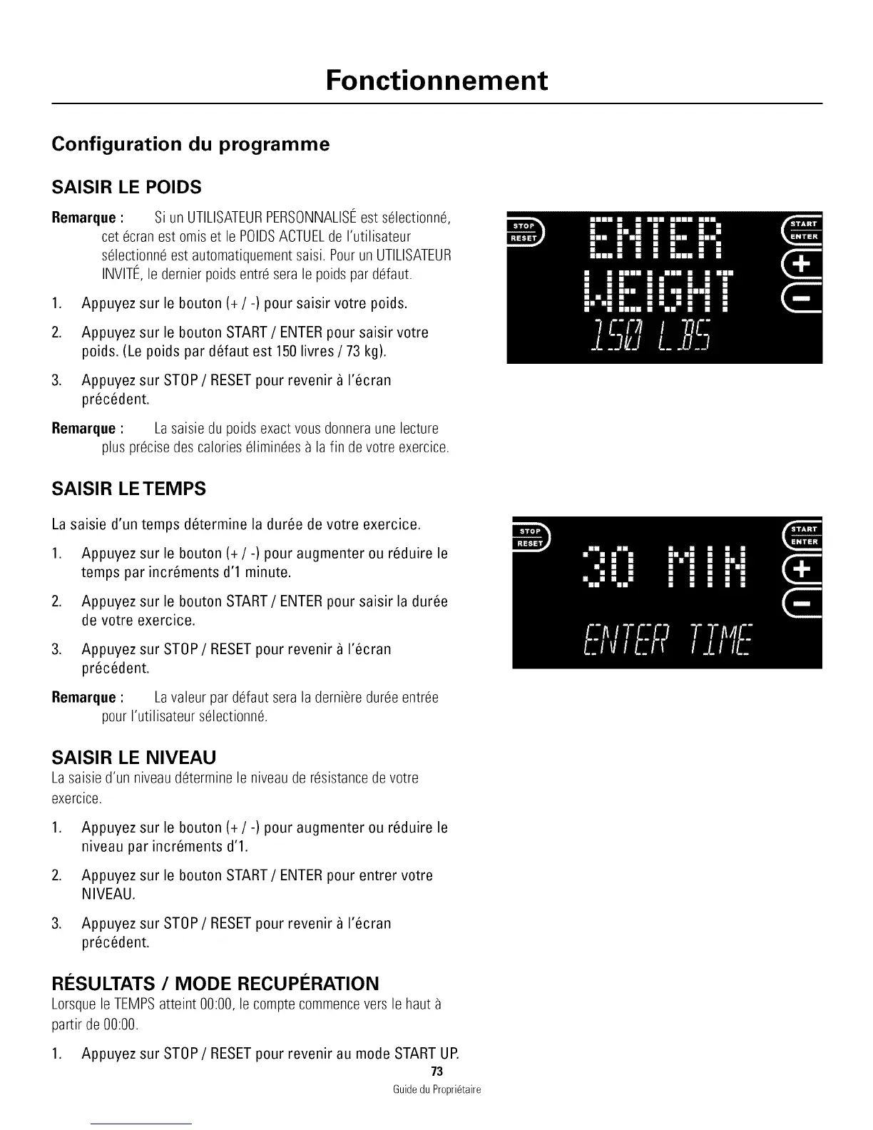 Appuyez sur le bouton START/ ENTER pour entrer votre