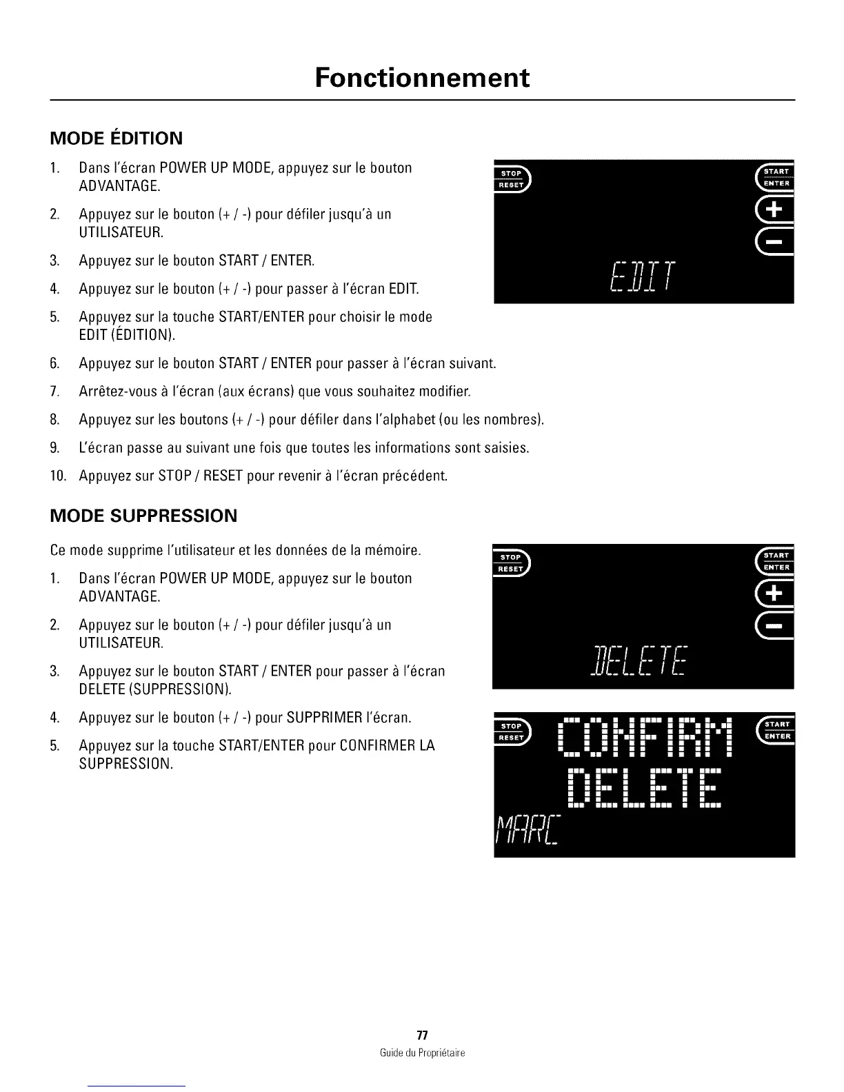 Appuyez sur la touche START/ENTER pour C0NFIRMER LA